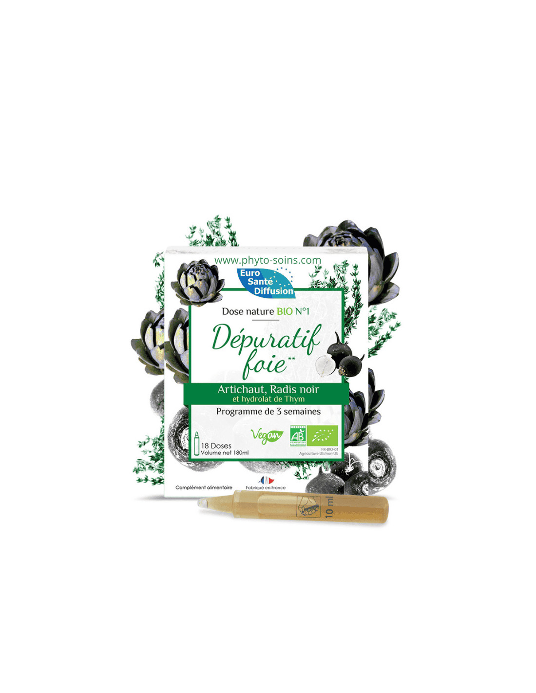 2 plantes et un hydrolat dans cette dose nature qui a pour but de maintenir le foie en bonne santé en l'aidant à éliminer les toxines. Voyons dans le détail la composition: