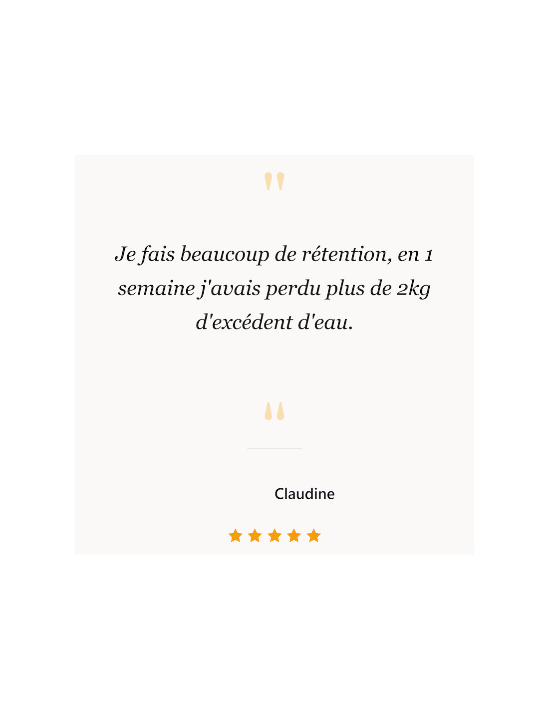 L'avis de phyto-soins: Une préparation qui favorise l'élimination du surplus d'eau en stimulant la fonction rénale. Dans les cas où il y a une circulation lymphatique difficile, associer avec le circulation lymphatique.